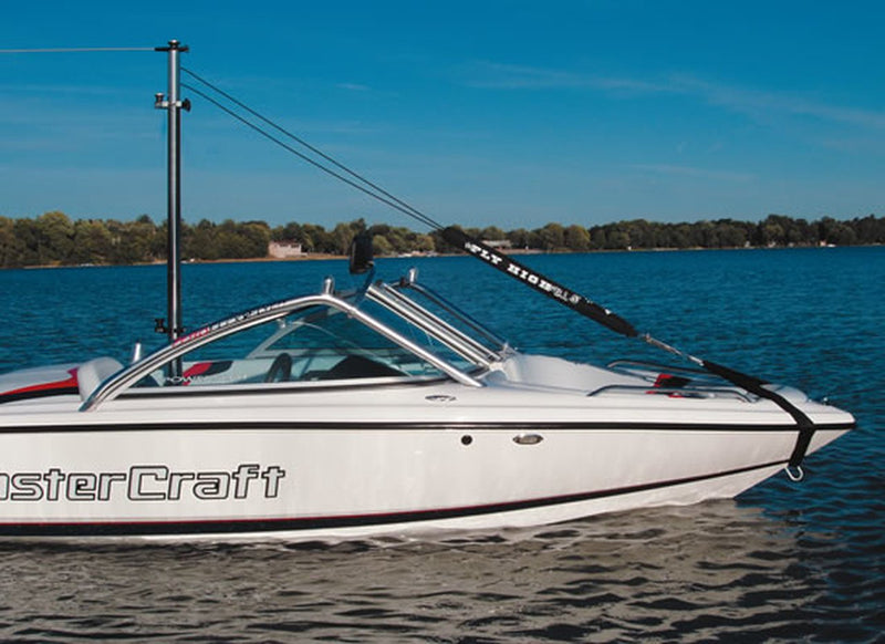 If you want to feel 60% lighter, we offer the Tower Extension or Super Fly High which mounts on the tubing of any wakeboard tower and raises the rope height to an amazing 14 feet off the water. This has now become standard at all record capable barefoot skiing tournaments because it makes everything you do behind the boat safer!